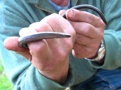 Hij lag op het pad en bleef er stil liggen, bij het oppakken stribbelde meneer hazelworm niet tegen. Toen hij weer in het grasveld werd terug gezet verdween hij langzaam, we hebben hem niet weer gezien.