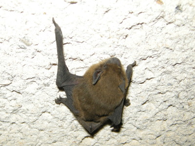 Tegen de schemering vliegen er altijd twee vleermuizen rond het huis. Op een avond vloog er een in de kamer. De grof gepleisterde muur zocht hij uit voor een korte stop. Ook de volgende avond vloog hij (of was het nu zij?) weer binnen.