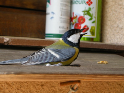 Gewoon een pimpelmeesje, met een verhaal. We lunchten buiten op het overdekte terras toen deze mees tegen het ruitje aanvloog en neerviel. Hij kreeg een mond op mond beademing en zie even later vloog hij weer weg.