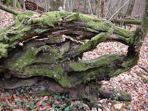 ![]() Ook de resten van de draken kun je nog terug vinden in het bos. |